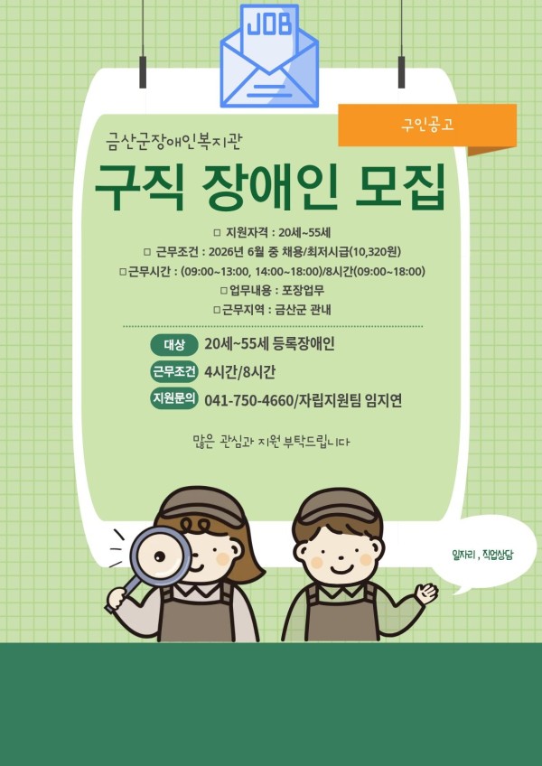 말머리1 장애인 구직안내 페이지 정보 작성자 최고관리자 댓글 0건 조회 1회 작성일 26-04-06 15:25 목록 답변 본문 자립지원팀 구직 안내 다음글말머리 테스트 26.03.27